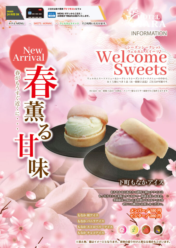 ウェルカムスーツメニュー&別紙シークレットシーズンスイーツメニューの中から、
