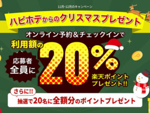 ハピホテオンライン予約&チェックインで “ 利用額の20% ” を楽天ポイントでプレゼント!
