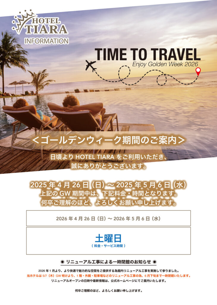 2026年のゴールデンウィークは、川崎の TIARA で大切な人と特別な時間を過ごしませんか?